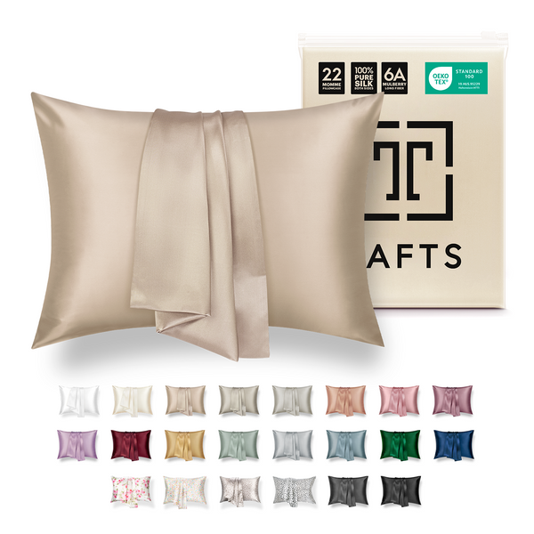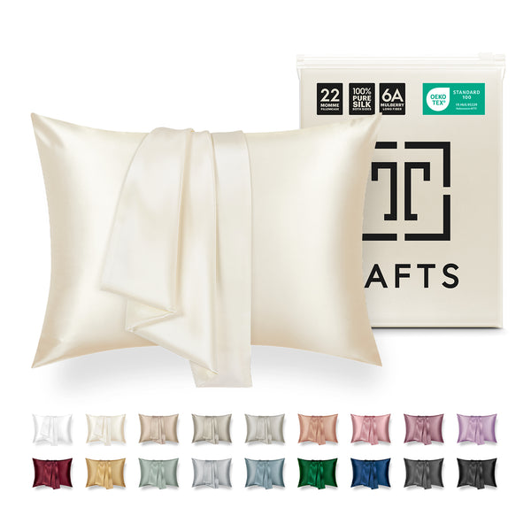 - 💁♀️ULTRA SLEEK & SMOOTH - Tafts Grade 6A long fiber silk pillowcase features a supertight, 22 momme weave that reduces friction allowing your skin to glide along with the pillow, which can reduce sleep creases on your face. Tafts pillowcase glides freely over your hair, reducing friction and hair thinning from breakages due to dry and knotted hair.
