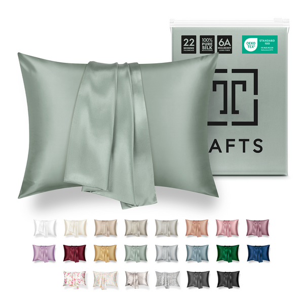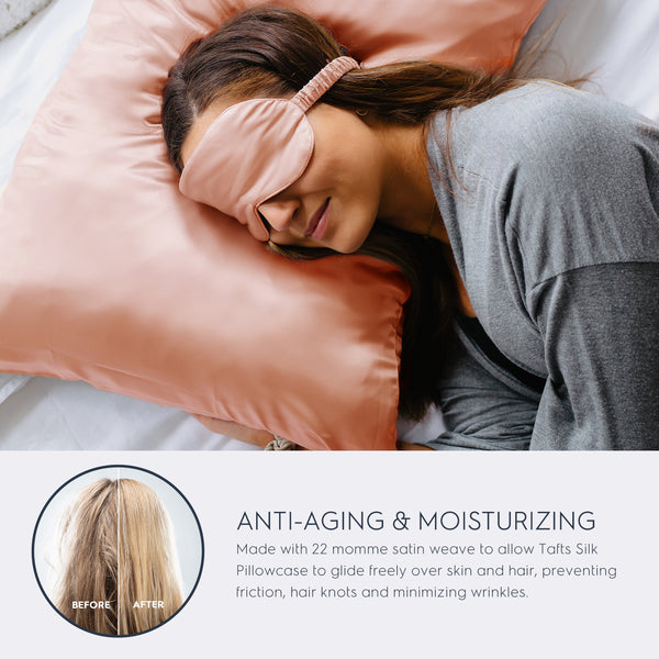 - 🙅♀️ANTI-AGING & MOISTURIZING - Tafts Silk Pillowcases are made from 100% Pure Mulberry Silk (Grade 6A long fiber), that have natural anti-aging properties that prevent acne and wrinkles by keeping skin moisturized and radiant. Tafts pillowcases are shown to absorb less face cream than cotton pillowcases, so they can help keep your skin moisturized and keep hair natural oils or products where they belong. Plus silk fabrics keep your lashes looking gorgeous overnight.